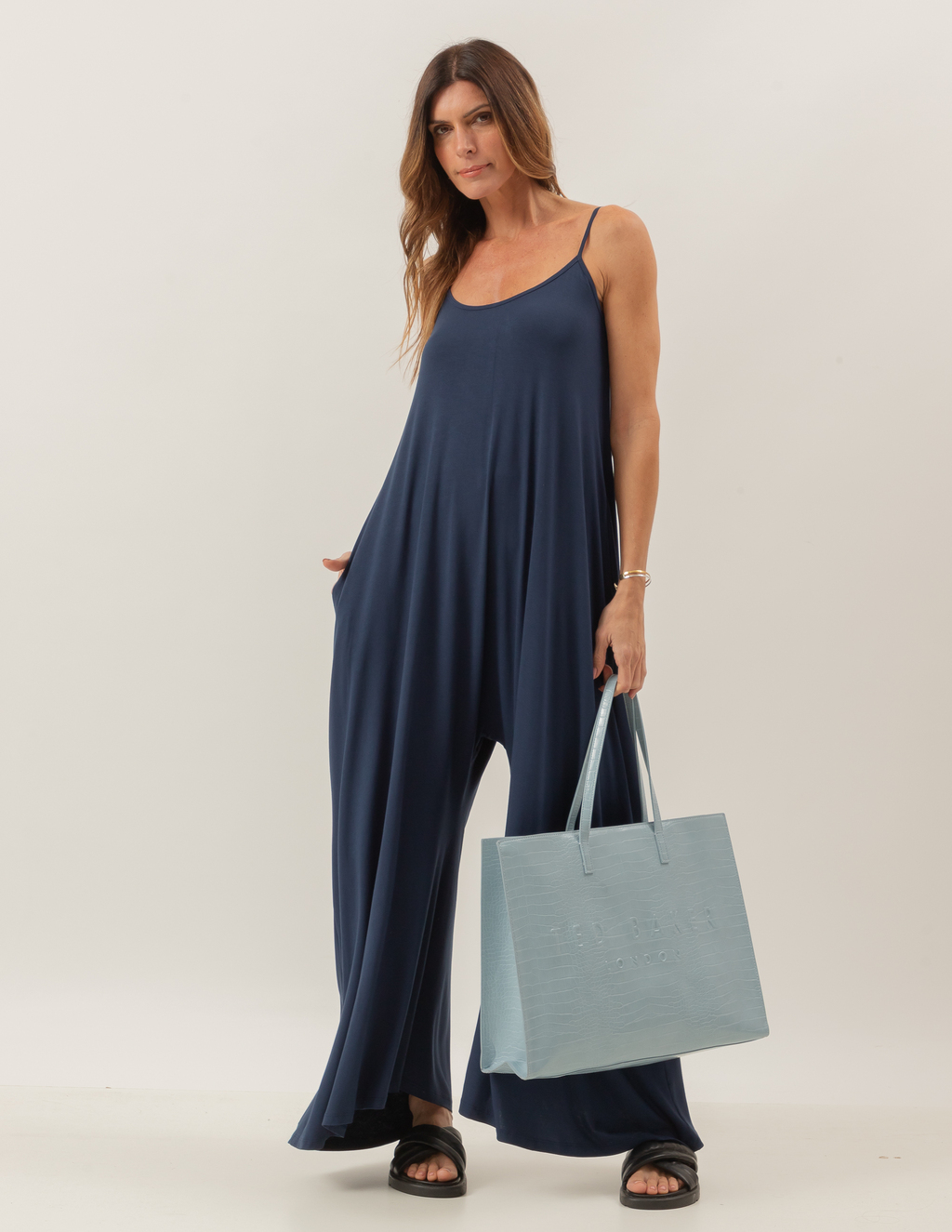 Com uma composição de 80% Viscolycra e 20% Elastano, este macacão oferece um toque macio e agradável à pele, além de se adaptar às suas curvas de maneira confortável.