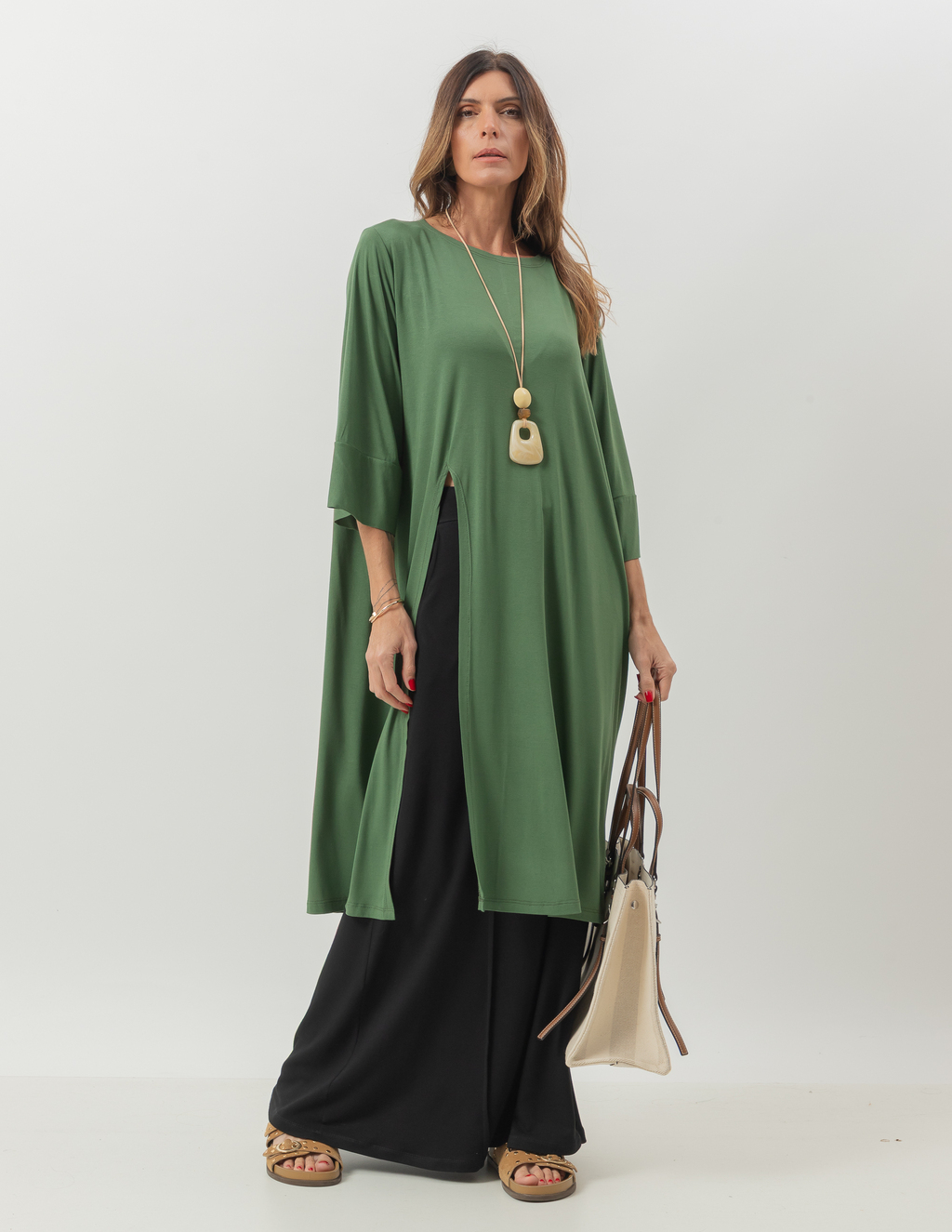 Túnica Margot - Um Abraço de Estilo nos Dias Suaves! Criada especialmente para aqueles momentos de clima ameno, a Túnica Margot é mais do que uma peça de vestuário. É uma declaração de conforto e elegância, confeccionada com maestria em malha viscolycra.